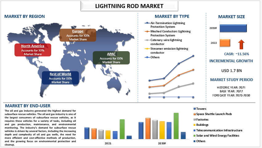 According to the UnivDatso, the surging shift towards sustainability across industries and the increasing infrastructure development will drive the global scenario of Lightning Rods and as per their “Lightning Rod Market” report, the global Market was valued at USD 1.7 billion in 2022, growing at a CAGR of 11.56% during the forecast period from 2023 - 2030 to reach USD billion by 2030.