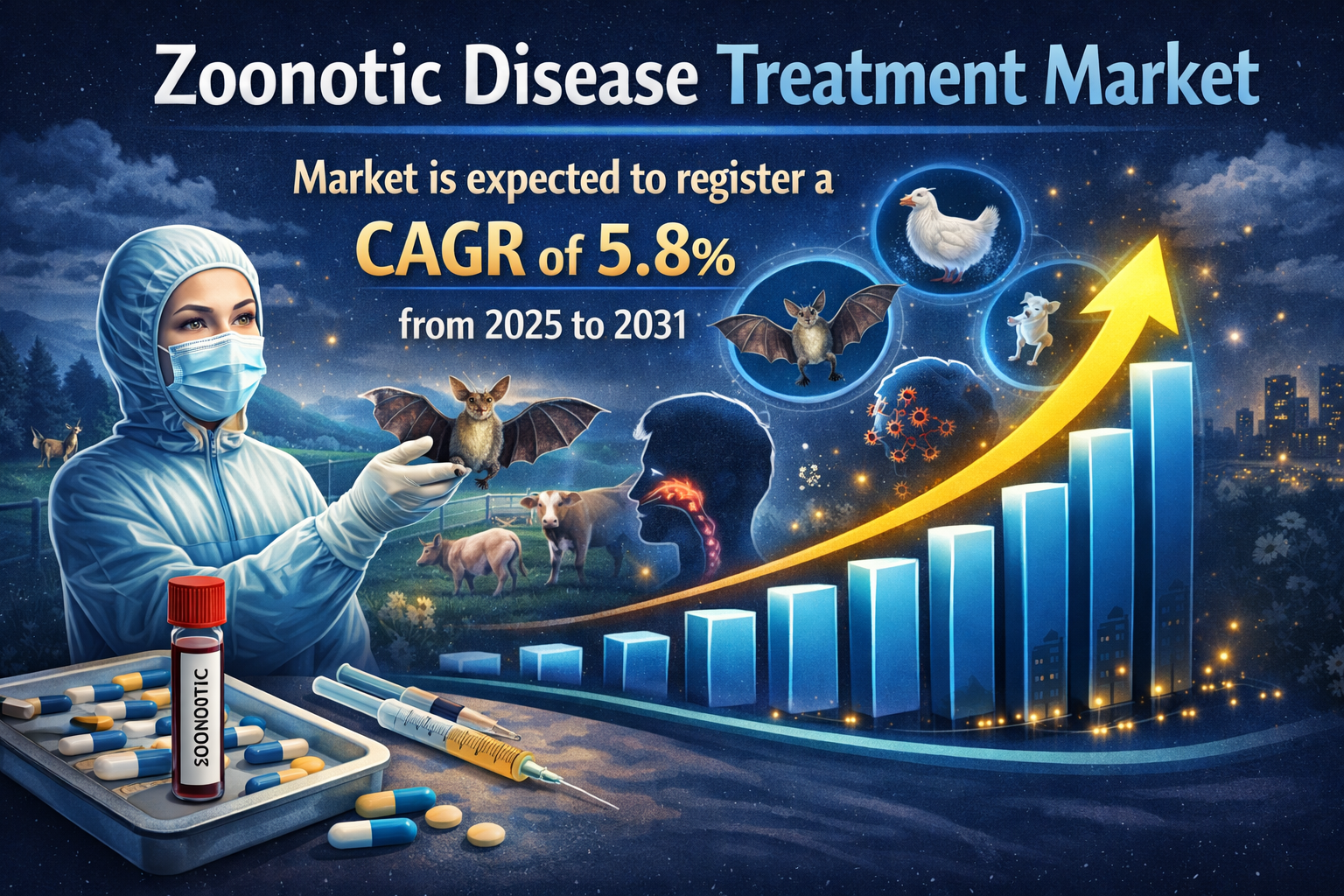 The Zoonotic Disease Treatment Market is gaining critical importance in global healthcare as the prevalence of diseases transmitted from animals to humans continues to pose serious public health challenges. Zoonotic infections such as rabies, malaria, tuberculosis, and Ebola virus disease have persisted across continents, prompting governments, healthcare providers, and pharmaceutical companies to enhance therapeutic strategies, diagnostics, and treatment accessibility. According to industry forecasts, the Zoonotic Disease Treatment Market is expected to register a compound annual growth rate (CAGR) of 5.8% from 2025 to 2031, highlighting a robust growth trajectory driven by rising disease incidence, technological advancements, and increased healthcare spending.