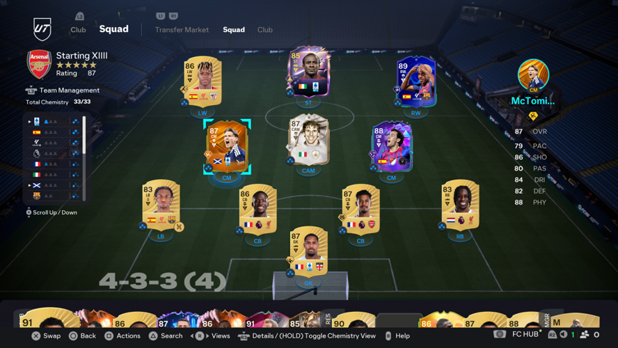- Vous devez construire une équipe avec une note minimale de 87, en utilisant 11 joueurs.