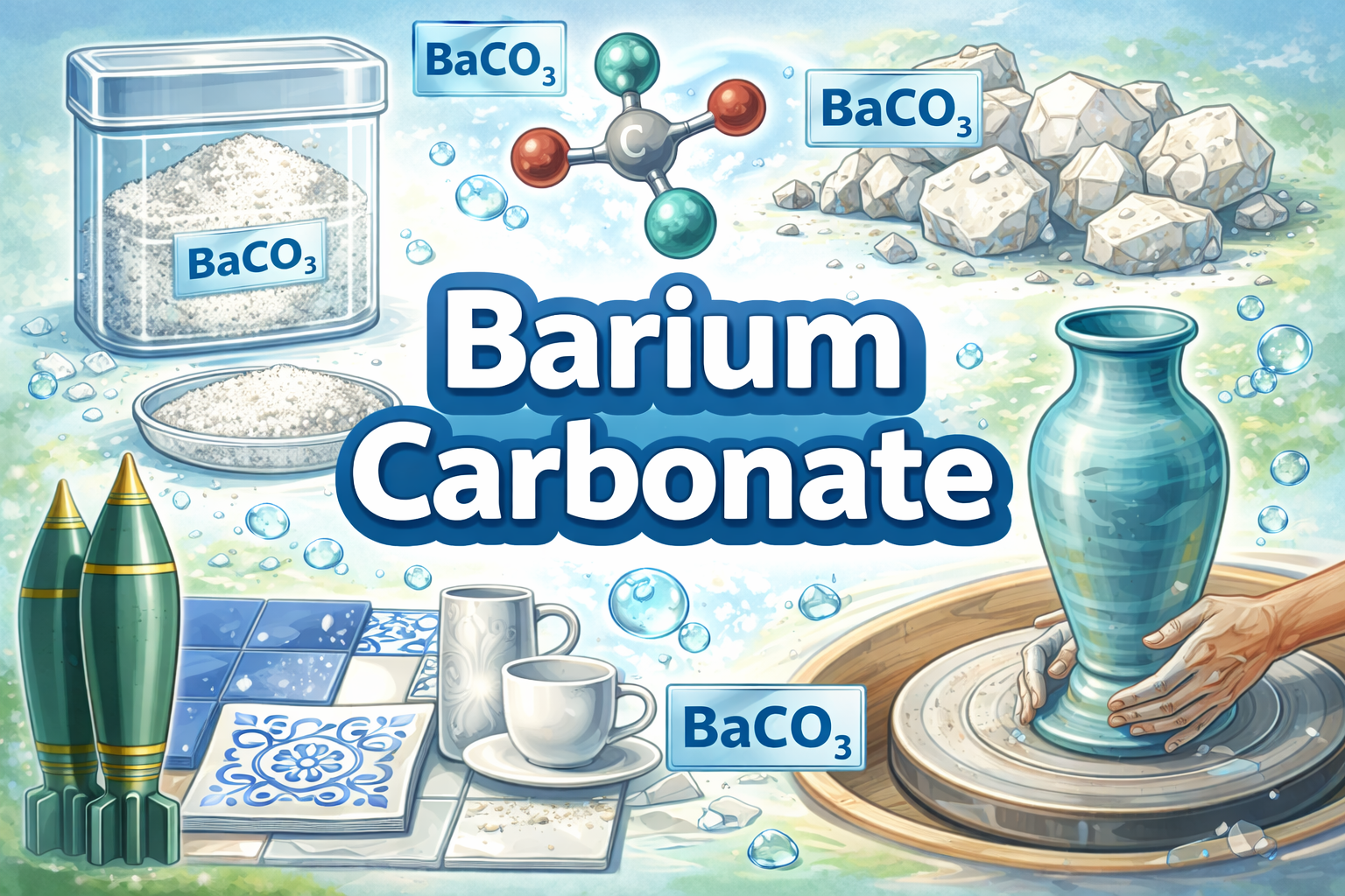 Barium carbonate is a white inorganic compound widely used in ceramics, glass manufacturing, bricks, and specialty chemical applications. It is known for its ability to remove sulfate impurities, improve product durability, and enhance surface quality in industrial materials, making it essential across construction and manufacturing sectors.